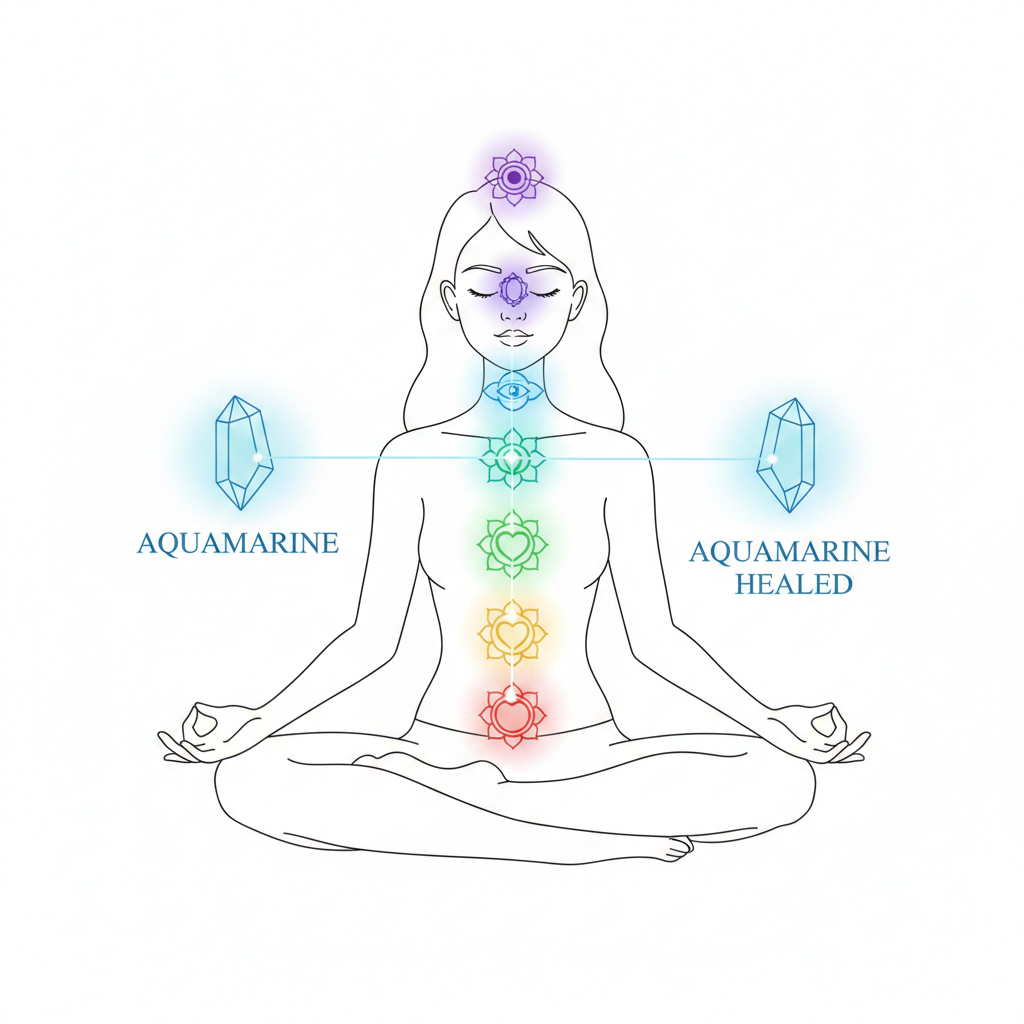 In healing practices, aquamarine is strongly connected to emotional and mental well-being. It is thought to reduce stress, ease anxiety, and encourage clear, compassionate communication. Many crystal healers associate aquamarine with the throat chakra, making it a powerful ally for those who struggle to express their truth or speak with confidence. By aligning thoughts with words, aquamarine is believed to support honest conversations, calm self-expression, and peaceful resolution of conflicts.